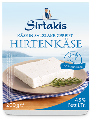 Ein ausgesprochen milder natürlicher Geschmack und eine weiche Textur machen den Sirtakis Kuhmilchkäse